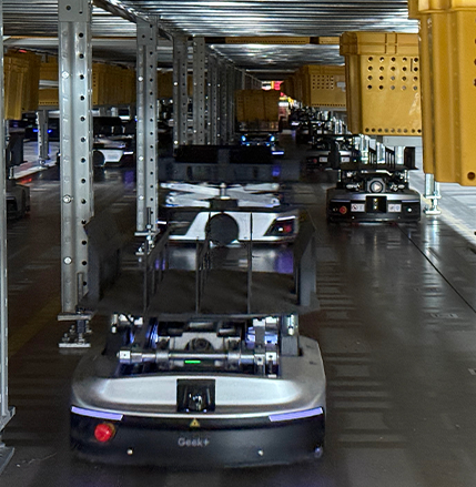 智能機器人、自動化導航系統和密集存儲技術的組合應用,讓我們實現了貨到人自動化處理、密集存儲和彈性庫容等功能,為客戶提供全流程數字化、智能化、精準化服務,極大地提高了生產效率和質量,降低成本和能耗。超過百萬英尺的投產數量,更使得我們的大規模數字化生產能力在行業中遙遙領先,未來也將迎來更加高效、智能和可持續的生產方式。